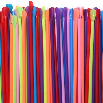 160 Disposable Plastic Spoon Straws in Bright Colors