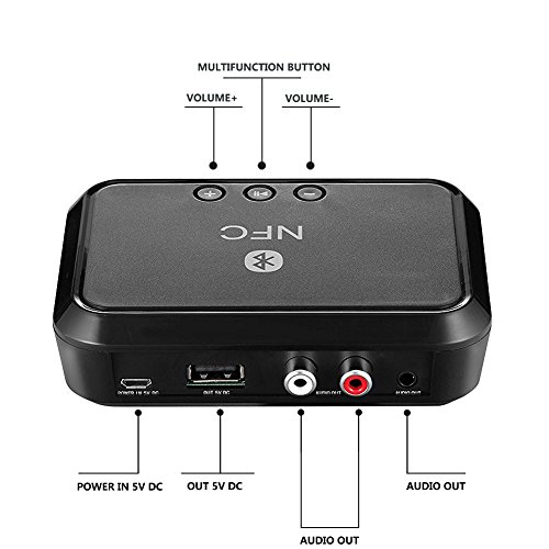 YETOR Bluetooth 4.1 Music Receiver,NFC-enabled,3.5MM/ RCA Stereo Output,Bluetooth Audio Receiver Adapter for Home Stereo Sound System, Wireless Speaker Adapter for Bluetooth Audio Devices …