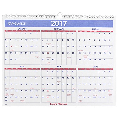 Page size 14-7/8 x 11-7/8", overall size 15.5 x 12 x 15/16"; dates of federal holidays are red to increase visibility; printed on quality paper containing 30% post-consumer recycled material; wirebound with reinforced hanging loop for easy wall display
