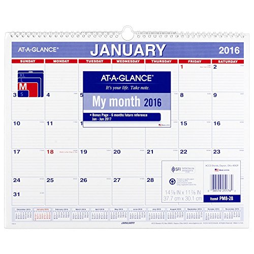 Displays one month per page with full year calendar reference providing a convenient view of all your monthly events and activities; large 2 x 1.75" daily blocks are ruled so handwritten notes are neat and easy to read