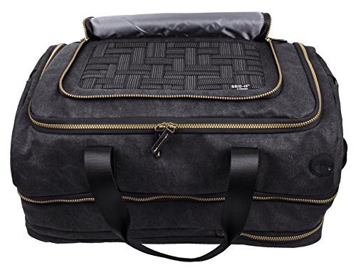 -. Feature : Built-In 11.26" X 6.5" GRID-IT! Front Pocket, Padded Laptop Compartment Fits up to 17" laptop / Dedicated Tablet Compartment, 2 Convenient Document Pockets, Large Zipper Pocket On Interior Flap / Convenient Pocket Organizers For Additional Storage with Built-In Key Chain / Internal Mesh Pocket With External Wire Management For Keeping That Extra Battery Handy / Water Resistant Wax Canvas Exterior