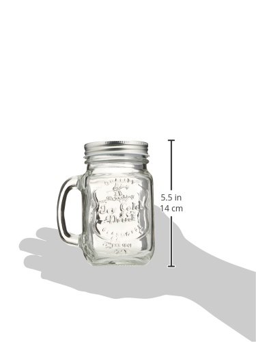 Studio : Estilo Publisher : Estilo Binding : Kitchen Product Description Set of 6 mason jar mugs with handle and tin screw on lids.. Made of thick high quality glass. Will enhance your parties, wedding, events, barbecue's, picnics etc. Fill with your favorite drinks, cocktails, juices, shakes, smoothies etc. Dimensions in inches; 2.75" L x 2.75 W x 5" H. Capacity 16 Ounces each. For best care hand wash only!. Not recommended for hot liquids!. 0