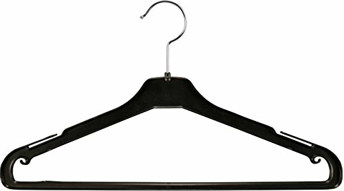 -. Title : Black Plastic Suit Hanger with Non-Slip Pant Bar, 17 Inch Hangers with Long Notches for Hanging Straps, Great for Shirts or Jeans