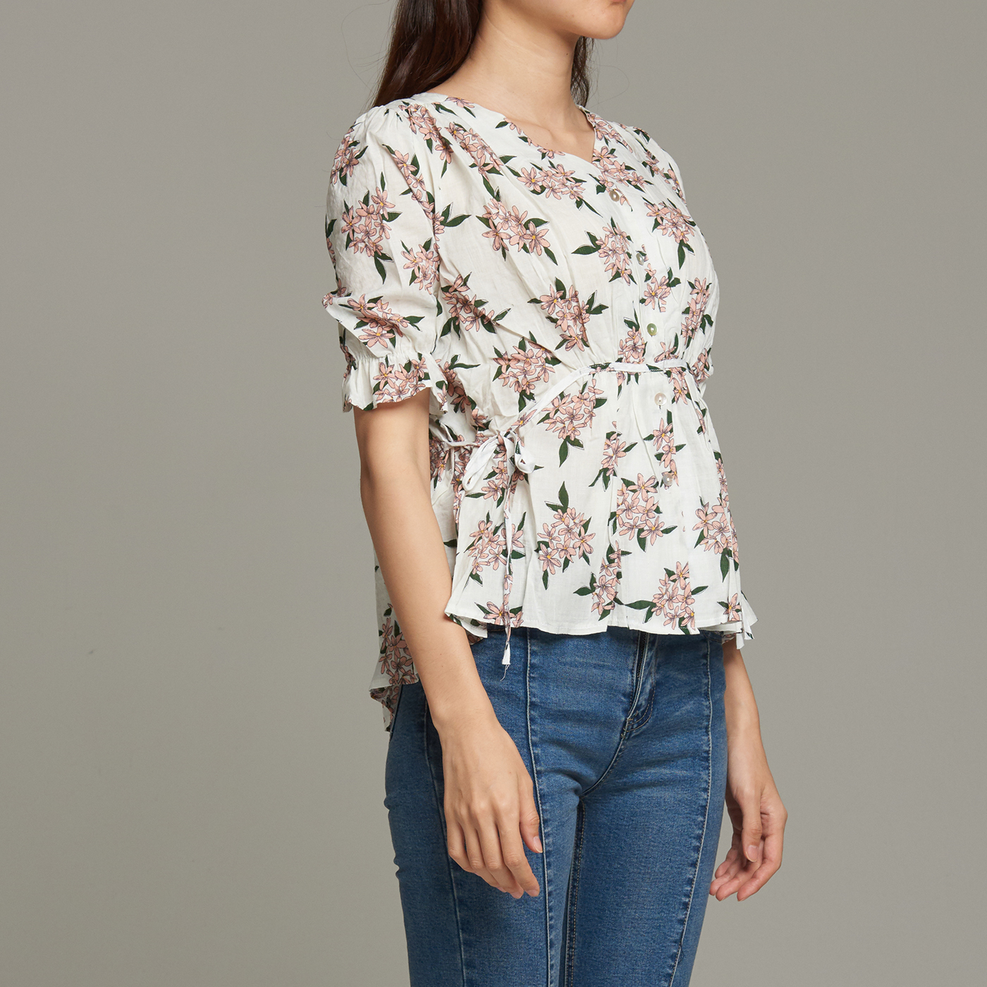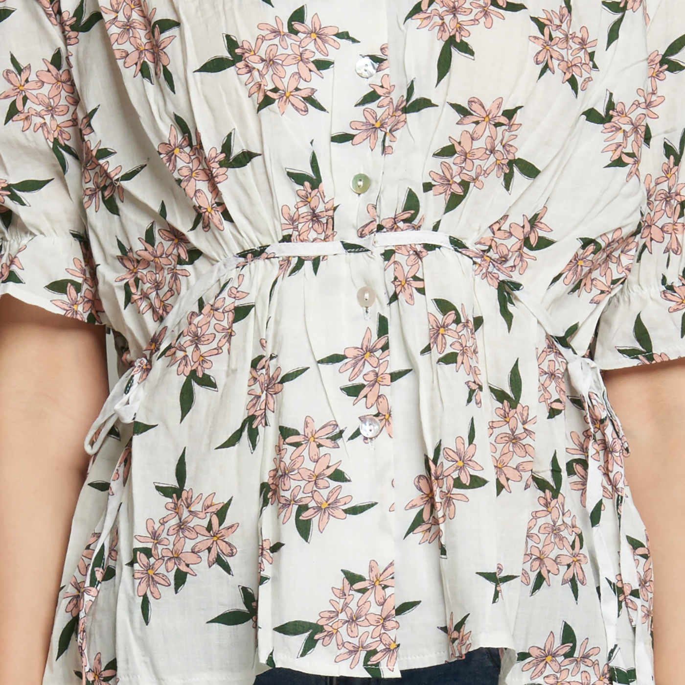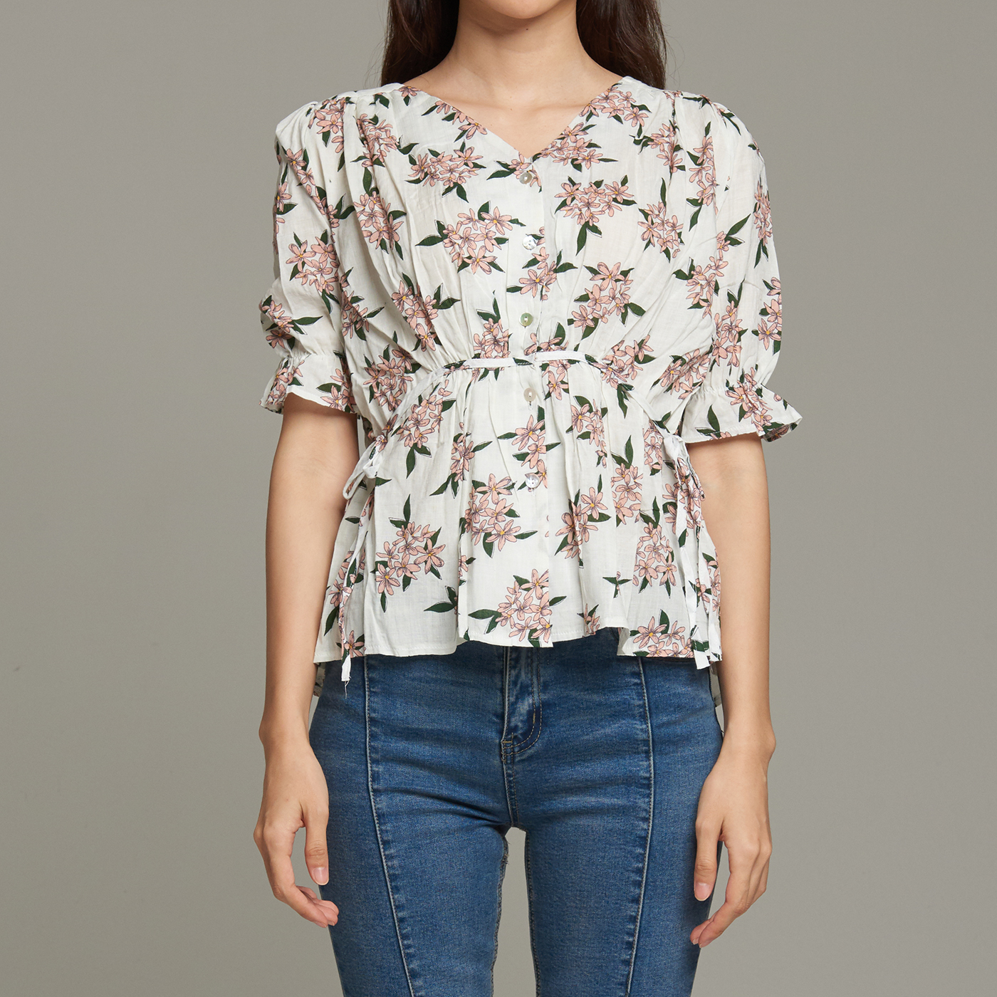 플라워 패턴과 컬러감이 예쁜 디자인으로 허리라인의 디테일이
