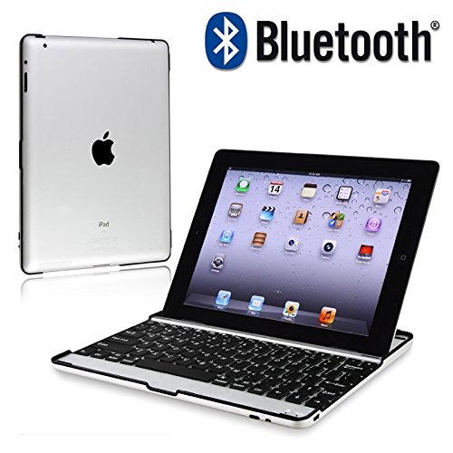 Glanzix Aluminum Bluetooth Keyboard Case for Apple Ipad 2 and 3 (Silver with Black Keys)