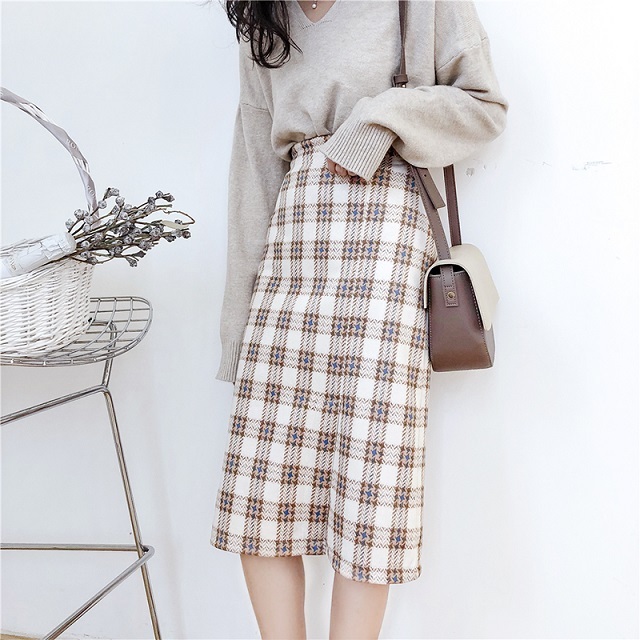 ホワイトカラーベースのチェック柄が爽やかで、女性らしい雰囲気を演出してくれるきれいめスカートです♪