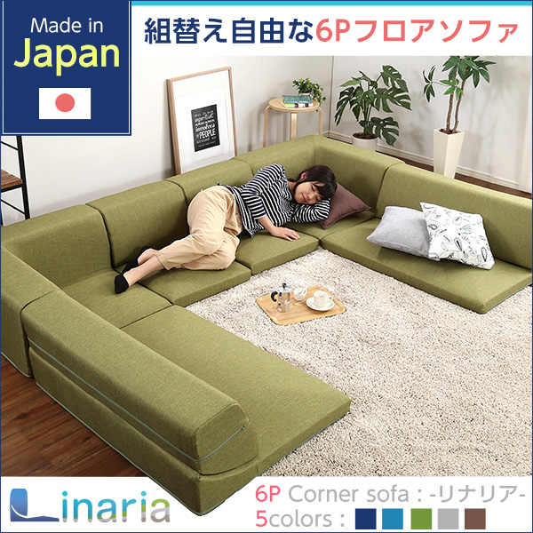 コーナーフロアソファ ロータイプ ファプリック 3人掛け(5色)同色2セット|Linaria-リナリア-