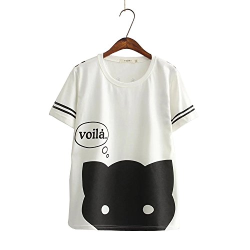 -. Title : (エスライフ)S-Lifeeling Tシャツ 森ガール ネコ柄 純色 トップス かわいい シンプル きれいめ 上品 半袖 ラウンドネック お出掛け お呼ばれ レディース プルオーバー