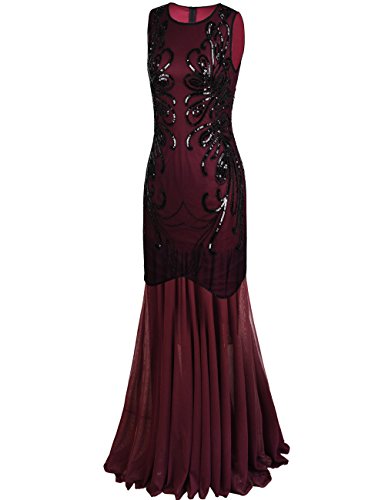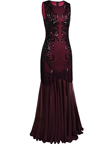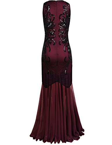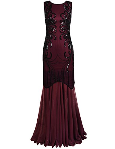 PrettyGuide Women 1920s Gown Sequin Long Cocktail Evening Formal Dress S Burgundy