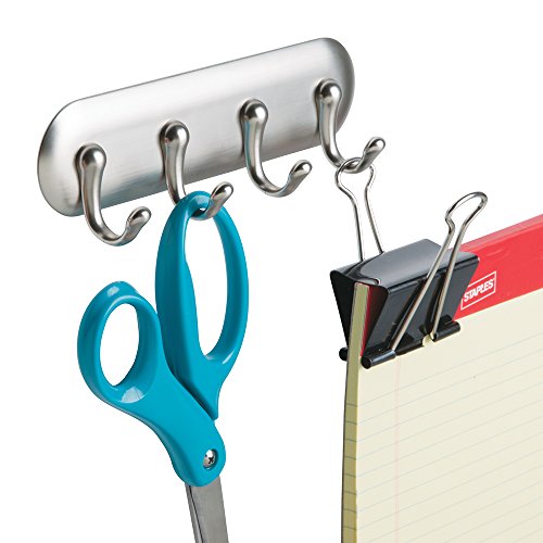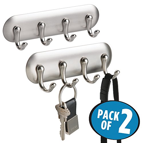 mDesign AFFIXX, Peel and Stick Strong Self-Adhesive Key Storage Rack for Kitchen, Office, Entryway - Pack of 2, 4 Hooks, Brushed Nickel