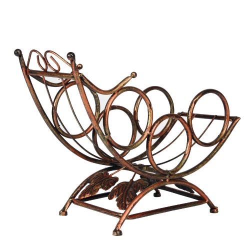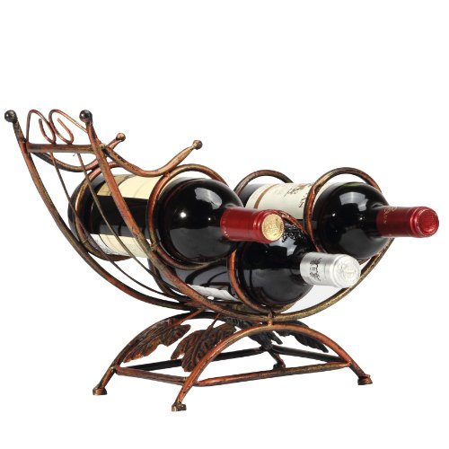 - Feature : Artistically designed wine bottle holder stores up to 3 bottles. / Natural vineyard leaf accents fit in when entertaining guests on your patio or indoors. / Perfect as a dining table centerpiece or for countertop storage. / Sturdy bronze tone metal construction. / Approximate Dimensions: 15" L x 6.25" W x 10" H