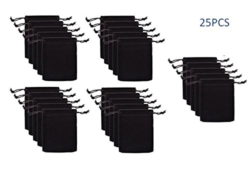 jenifer2015 Pack of 25pcs 3" X 4" Velvet Drawstring Cloth Jewelry / Gift / Headphones Bag / Pouches (Black)