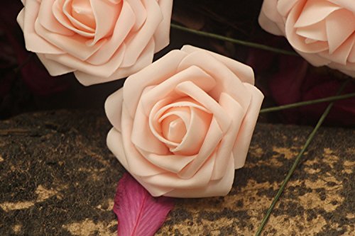BQUQO Artificial Flowers Roses Fake Roses Steam for Wedding Bouquets Baby Shower Party Table Centerpieces Decorations 10 pcs, Peachy Pink