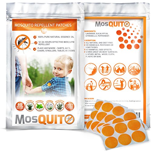 -. Brand : Mosquito -. Color : Orange -. EAN : 0636676730363 -. Feature : NON-TOXIC protection from mosquitoes, using all-natural essential oils. 3cm-diameter orange patches are infused with citronella, eucalyptus, lavender and peppermint / SAFE for skin and surfaces. Choose a bare arm or a shirt sleeve. Put a patch on a picnic table to protect everyone at the BBQ. For infants, you can put a mosquito repellent patch on a stroller to keep mosquitoes at bay. Will not harm leather, metal, wood, plastic, clothes or skin. Can be used indoors / LONG-LASTING 12-24-hour effectiveness: Non chemical essential oils will protect your kids, baby or infants from annoying insects. / IDEAL for all activities. Will not impede sports by sliding around the way a repellent bracelet can. Golf, fish, hike, run, workout, play tennis without realizing the mosquito repellent patch is there / RESEALABLE pouch contains 10 sheets, each with 6 patches, for a total of 60 organic patches -. IsAdultProduct : 0 -. Label : MosQuitO -. Manufacturer : MosQuitO -. Model : PATCH -. PackageQuantity : 60 -. ProductGroup : Lawn & Patio -. ProductTypeName : OUTDOOR_LIVING -. Publisher : MosQuitO -. Size : 10 Sheet -. Studio : MosQuitO -. Title : Mosquito Repellent Patch 3cm Resealable 60-COUNT Pack All-Natural Non-Toxic DEET-Free 24-Hour Protection Lavender Eucalyptus Citronella Peppermint 100% Pure Essential Oils Safe On Skin Camping Sports Work -. UPC : 636676730363