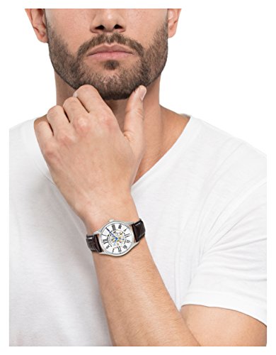 Silver stamped design dial with center skeleton cut out and black printed Roman numerals