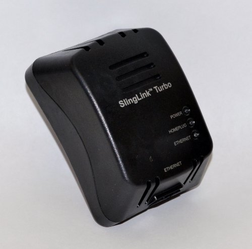 -. Binding : Personal Computers -. Brand : Sling Media -. Color : Black -. EAN : 0753960010397 -. Feature : Package includes 1- Ethernet Adapter, 1- 10FT Ethernet Cable and User's Manual / Easy to install and setup. Enables network access where power outlet is available / This item is sold individually. However, most applications will require 2. / They communicate over the electrical wiring in your home. SlingLinks installed in homes with older wiring may have slower speeds. Each SlingLink must be pled into circuits that connect in the same breaker box (most homes only have 1 breaker box, so this is usually not a problem). / Make sure each SlingLink is pled directly into a wall outlet. Do not plug into a surge protector as it may filter out the signal. -. Label : Echostar -. LegalDisclaimer : New. AS-is, no returns -. Manufacturer : Echostar -. Model : SL 300-100 -. MPN : 157089 -. PackageQuantity : 1 -. PartNumber : 157089 -. ProductGroup : PC Accessory -. ProductTypeName : NETWORKING_DEVICE -. Publisher : Echostar -. Studio : Echostar -. Title : Sling Media Slinglink Turbo W1 Ethernet Over Power Adapter -. UPC : 753960010380