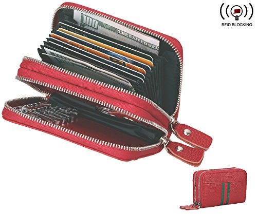 -. Title : Charming Tailor RFID Blocking 2 Zippers Small Genuine Leather Card & Keys Case Wallet
