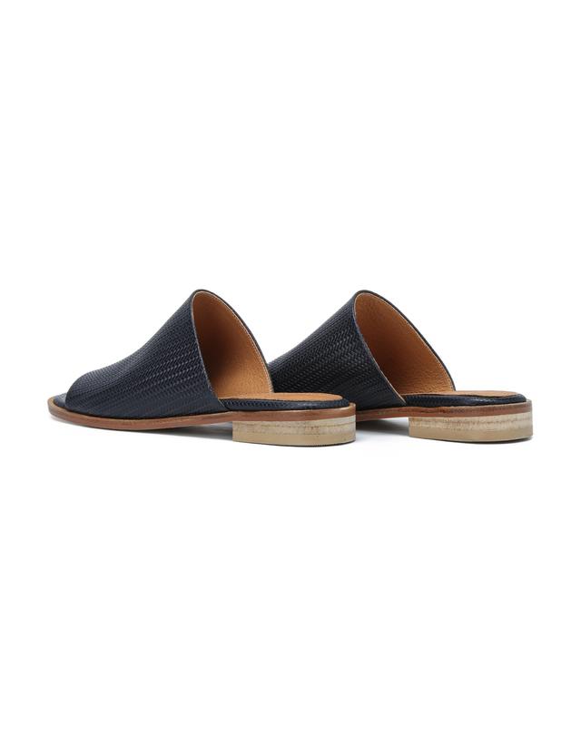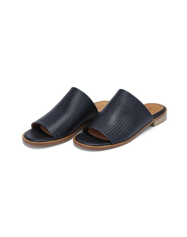 위빙 짜임으로 빈티지한 멋이 느껴지며 양가죽 소재를 사용하여 고급스러운 슬리퍼입니다.