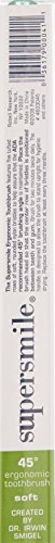 Supersmile’s patented 45° angled New Generation Toothbrush guarantees the ADA recommended brushing angle for proper oral healthcare. In order to promote healthy gums, the five tufted rows of DuPont soft, nylon bristles better removes plaque below the gum line and helps to stop gingivitis. The ergonomic brush design, which was in collaboration with NYC designer Rubin Singer. The New Generation Toothbrush promotes outstanding oral health by allowing the user to hold the brush at the ADA recommended 45°. The wide base allows for stand-up, hygienic drying. It is the number one toothbrush recommended by aesthetic dentists. For best results use with the supersmile Professional Whitening Toothpaste and Professional Whitening Accelerator.Feature