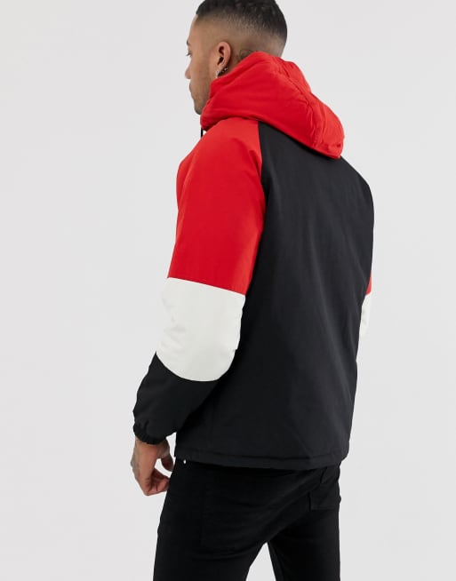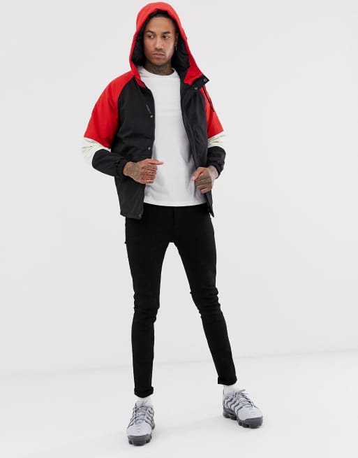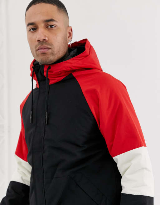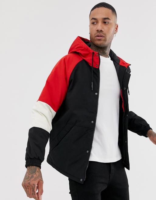 Bershka hooded jacket in black with red color blocking