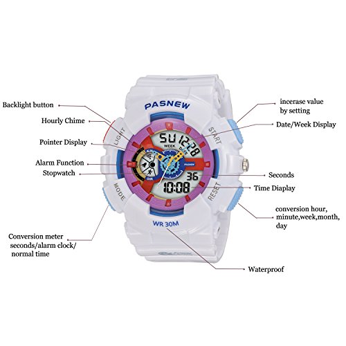 MULTI-FUNCTIONAL: Calendar Date Week Month, Alarm, time/date, EL night-light makes it easier to see time in bright light, boasts 3 ATM water-resistant for swimming, Alarm, Stopwatch, Hourly chime, 12/24 hour for mart