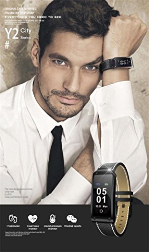 ?Description: ?100% brand new and high quality. ?Brand Model No:Y2 ?Bluetooth version:Bluetooth 4.0 ?Chip :NORDIC NRF52832 ?RAM/ROM (specific details):RAM 64KB ROM 512KB ?Waterproof grade:IP67 ?Functions (Heart rate monitoring, GPS, Siri, Sleep monitoring, Remote camera, Bluetooth music, Anti-lost, Find mobile phones, Weather monitoring, more) ?Distance, calories, remote photography, sleep monitoring, heart rate monitoring, calls, messages and other reminders or push-ups, raising hand bright screen, sedentary reminder, health sharing, find mobile phones, fitness goals set. ?Extra functions: Voice recorder, Radio, Calculator, Calendar, Altimeter, Altitude meter and more. ?Alarm reminder, drink reminder, weather synchronization. ?SMS reminder plus additional display ?Calls SMS reminders; if there is a phone call, display name the number; the unsaved number only shows the number. ?Whether to support the following important APP reminders, please specify (WhatsApp, Twitter, Facebook, Skype, WeChat, Line, G-mail, etc.) ? IOS supports the MSN Messenger, WhatsApp, Twitter, Facebook, Linkedln, Instagram; Android supports all mobile application reminders, and information programs) ?Display type / Size / Resolution:0.96 inch / TFT color screen / 160*80 ?Vibrate or display reminder :Vibration display ?Maximum number of alarms that can be set :20 ?Lock screen interface number:3 ?Battery capacity and type:105mAh Lithium-Polymer Battery ?Charging time:1 hour ?Standby time:26 days ?APP English name (very specific):H Band ?Support Android or iOS specific version:Android 4.4 iOS 8.0 or later ?Specific languages supported:APP Support: Chinese, Chinese (Traditional), English, Japanese, Korean, ?Case material:PC (glass lens) zinc alloy ?Strap material:Leather ?Package Includes:1XSmart watch 1X user manual 0