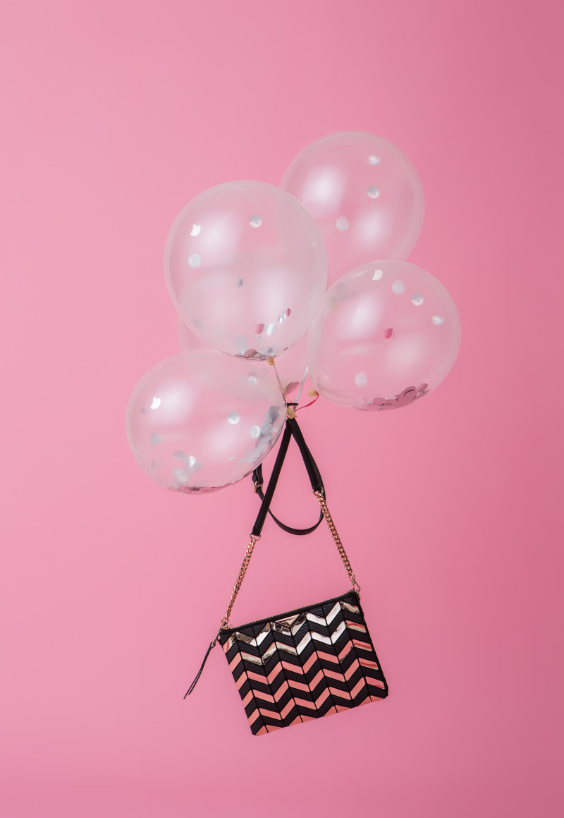 전면 로젤라 패턴으로 트렌디한 매력이 돋보이며 핑크 프리즘으로 포인트를 주어 화려하고 멋스러움을 더한 크로스백입니다.