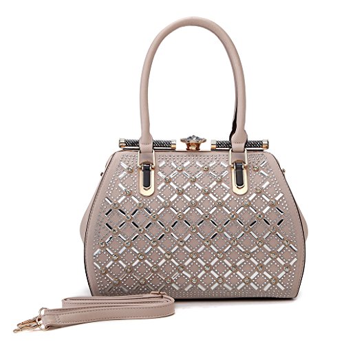 -. Brand : Satispac -. Department : womens -. Feature : Shining Geometric Design with Suede and Synthetic Leather Handbag / Crystal Jewel Ball Clam Top and Frame Clasp Closure / Size: L 12.5" x W 11" x H 6.5 " / Zipper Closure with 1 Small Inside and Outside Pocket and 1 More Inside Pockets / Detachable Shoulder Strap -. Model : DS-8314 -. ProductGroup : Shoes -. ProductTypeName : HANDBAG -. Title : Satispac Women's Shine Rhinestones Grid Design Handbag
