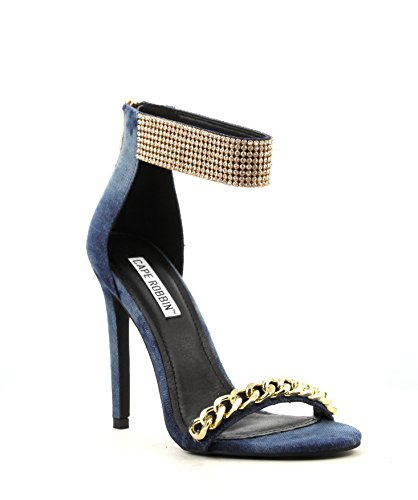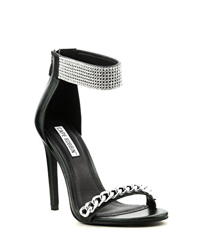 Cape Robbin women heel peep toe slim high heel with rhinestone perfect for evening night homeco...