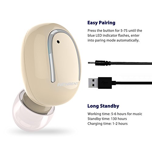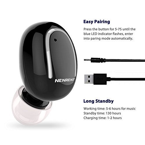 -. Feature : 1,Ergonomics Design: The NENRENT Q13 Earbud is designed according to ergonomics and the Q15 is smallest bluetooth Earbud in Currently, Fits either ear, wear the bud on right ear for better call clarity. / 2,Bluetooth issc V4.1 Version:Supports Multipoint Technology Can connect to two different devices in 10 meters range simultaneously. which makes it fit perfectly to your ear and comfortable. Guaranteed to be 100% secure & stable during intense exercise such as running, climbing, riding, camping and other active sports even in a rainy day. / 3,Longest Service Time: Built-in high performance rechargeable Lithium-poly 60mAh battery,High capacity battery provides up to 6 hours call time and 4-6hr music playtime at 40-50% volume (adE.q.u.a.t.e for home/office with little noise interference),full charge in around 1-2 hours and up to 130 hours standby time. / 4,Perfect compatible : Clear HD audio for listening to Audiobooks, Podcasts and Netflix, decent for music and calls. The Q13 is compatible with most Bluetooth enabled devices such as iPhone 5/5S/6/6S/7 Series,iPad 2/3/4/Air/Pro Series, Samsung Galaxy S7//S7,Galaxy Note 3/4/5/7 Series, iPod Nano Series, Laptop&tablets and another Smartphones LG/SONY/HTC etc / 5. Support Stream Music/Video/Audio. Its hands-free function would release your hands from answering the call during driving or walking. ?????1 Year Worry-Free Warranty. 26-hours email contact service is available. Please let us know if you have any quest as running, climbing, riding, camping and other active sports
