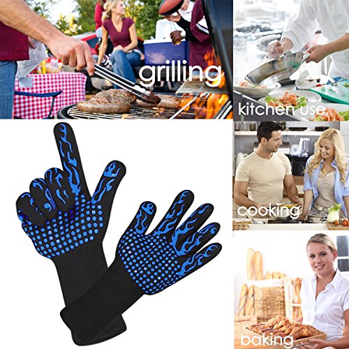 Amazing2015 932°F Extreme Heat Resistant Gloves for Cooking, BBQ, Grilling, Frying & Baking,1 Pair 14" Long For Extra Forearm Protection (Stripe)
