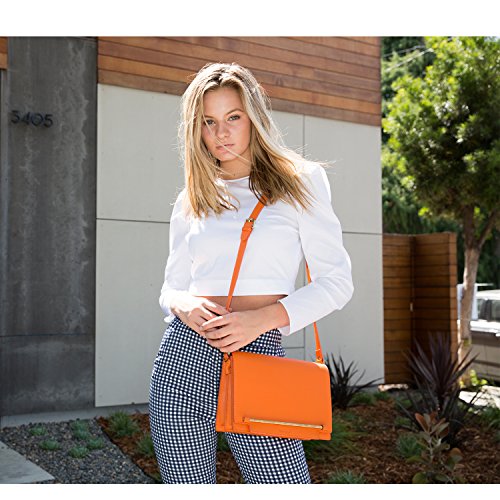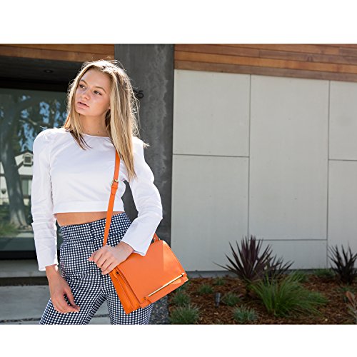 This smooth leather crossbody bag is sleek and modern in its design. The Kate features a magnetic closure and an extra zip pocket behind the front flap. Its cotton-lined interior includes 2 compartments with zipper pockets for cellphones and other trinkets. An adjustable shoulder strap allows for you to wear the bag over the shoulder or crossbody style. This classic handbag is also available in black.