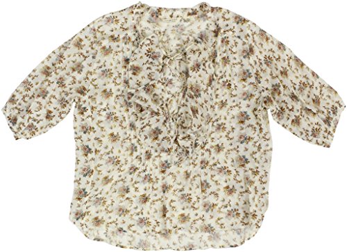 Raw edged rounded neckline; Three-quarter-length sleeves; Lace-up placket with a ruffled trim; Pintucking at the center front