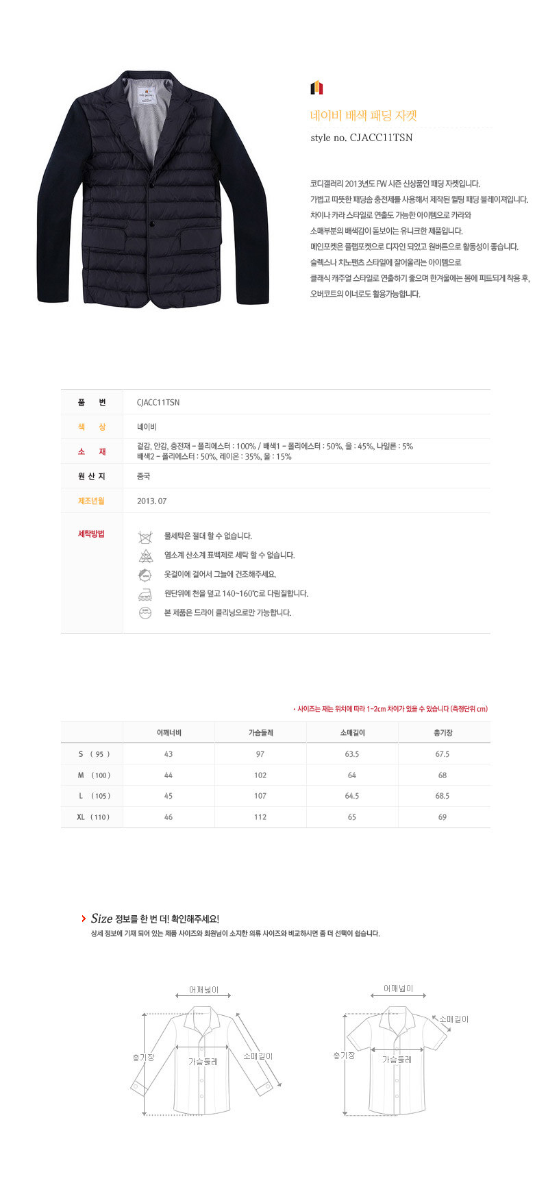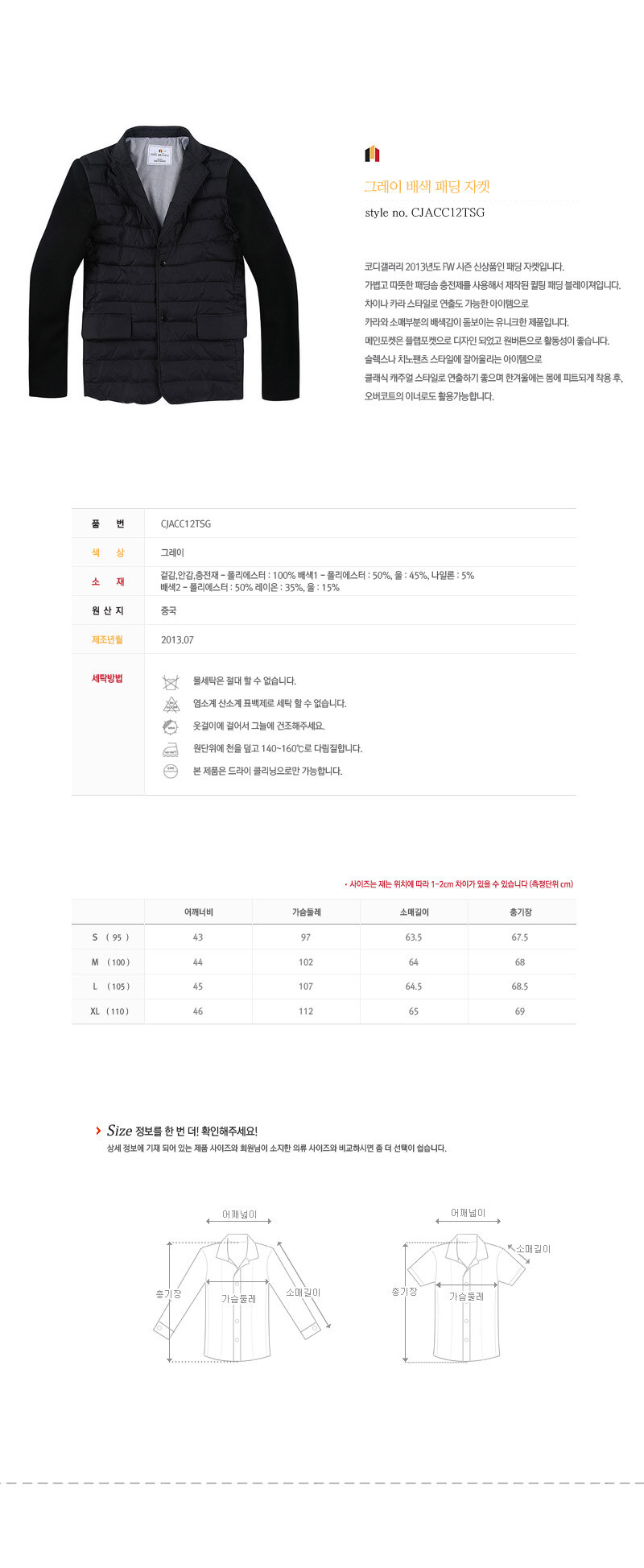 L(105) 肩45 胸107 袖丈64.5 着丈68.5