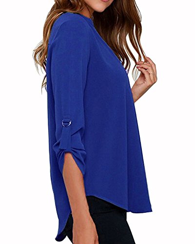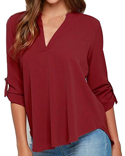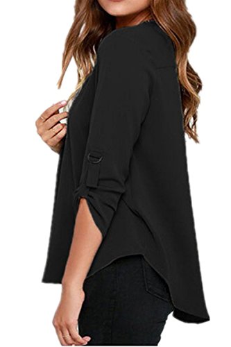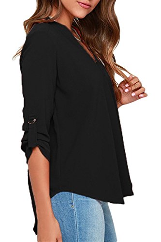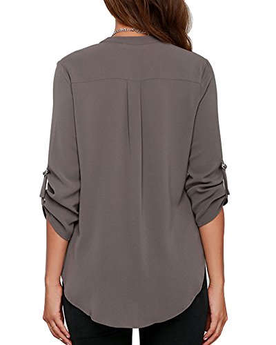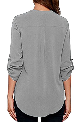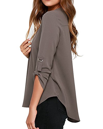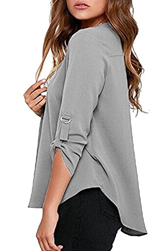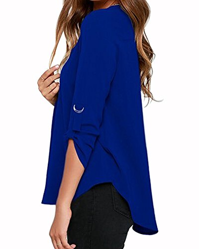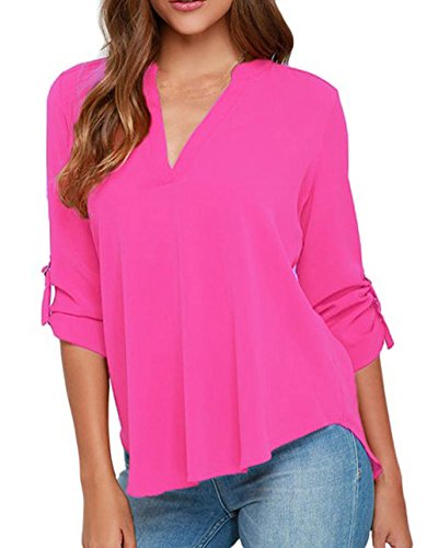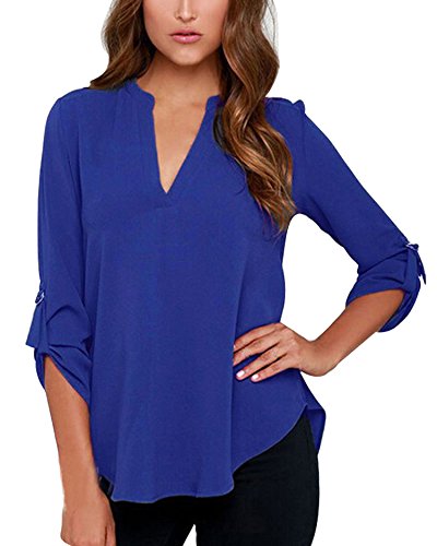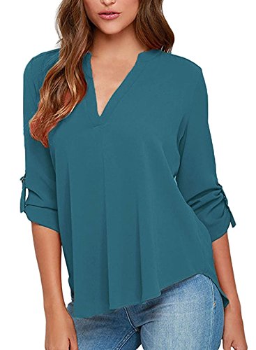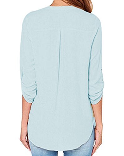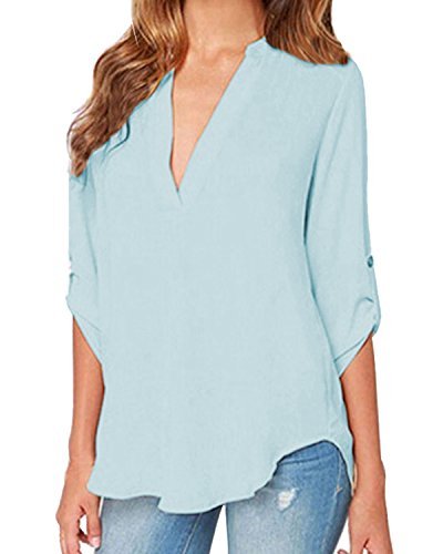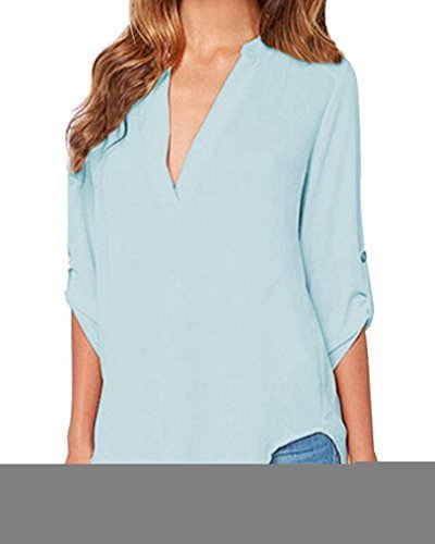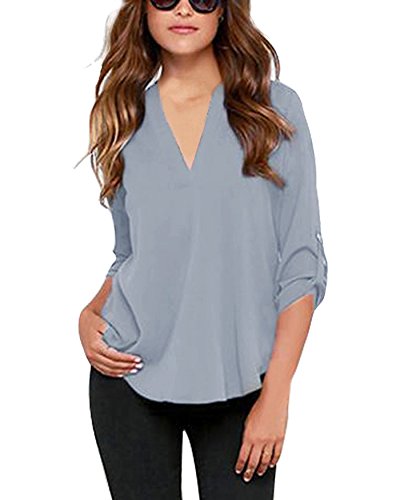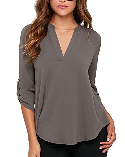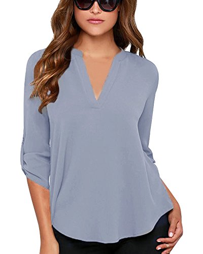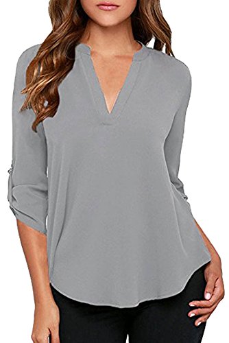 | Face N Face Women's Summer V Neck Solid Loose Casual Cuffed Long Sleeve Blouses |