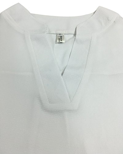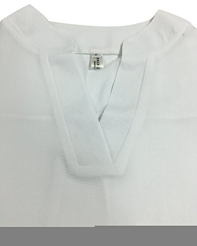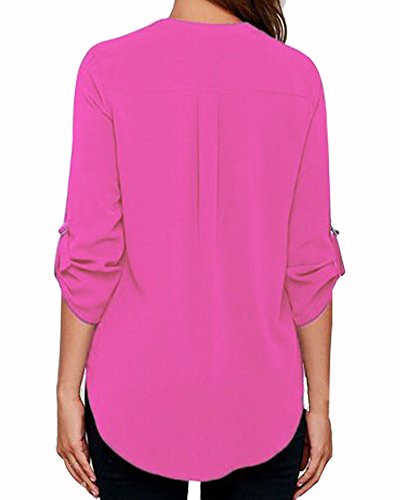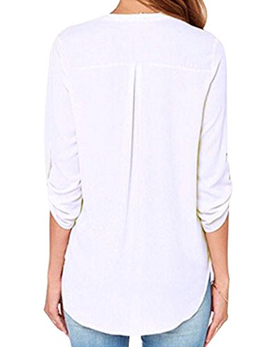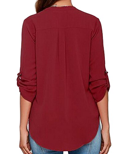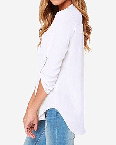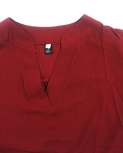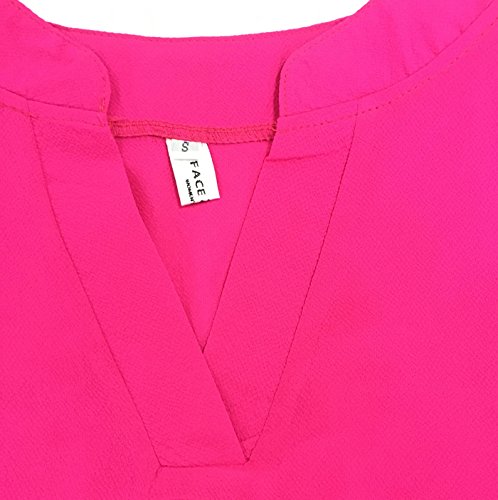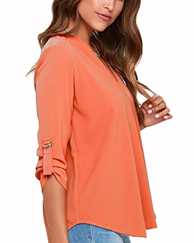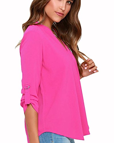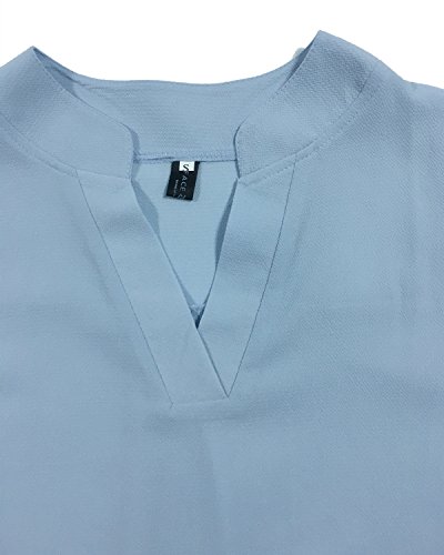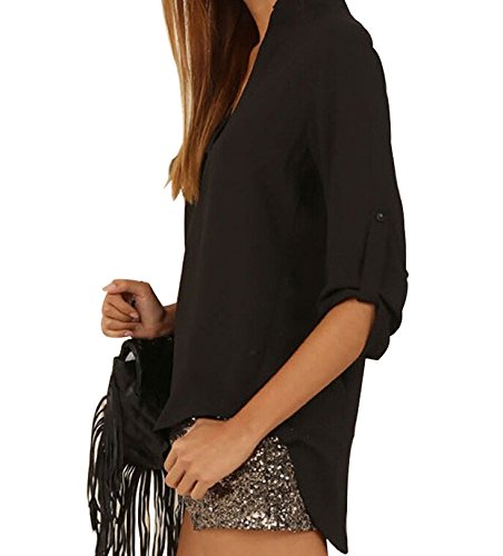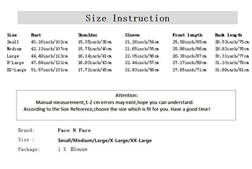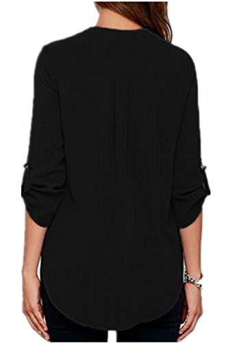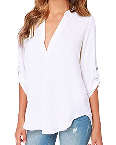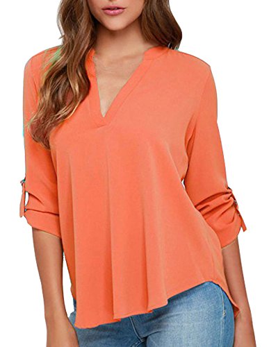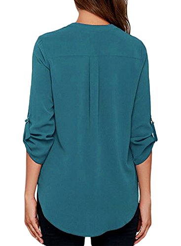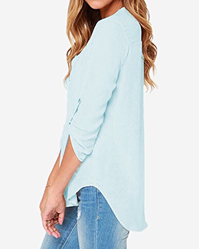 | Face N Face Women's Summer V Neck Solid Loose Casual Cuffed Long Sleeve Blouses |