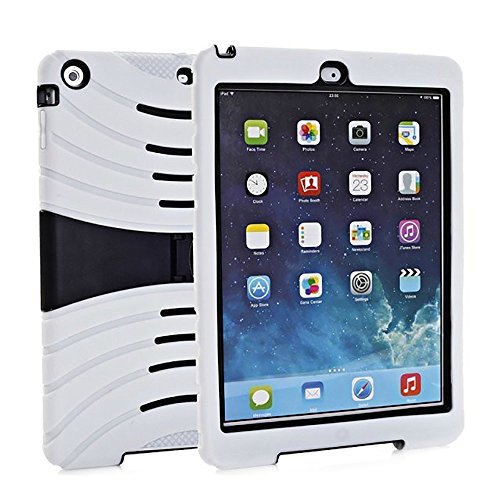 Ipad Air Case,silicone Ipad Air Case, DLF Case® Heavy Duty Rugged Impact Hybrid Case &Hard Plastic / Rubber Shockproof Case with Build in Kickstand Protective for Ipad Air/ipad 5 (White+Black)