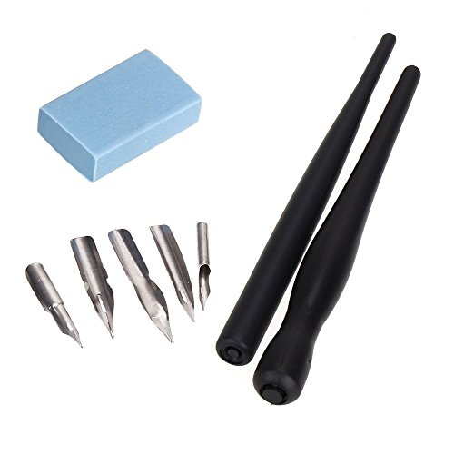 -. Feature : A comic kit: 2 pen holders, 5pcs nibs and a eraser, for your various needs / Ideal for lettering, calligraphy, poster making, cartooning, sketching, mapping / To develop your skills and express your ideas through beautiful designs / Material: Plastic+ metal / Size: pen handle Length about 12.3cm