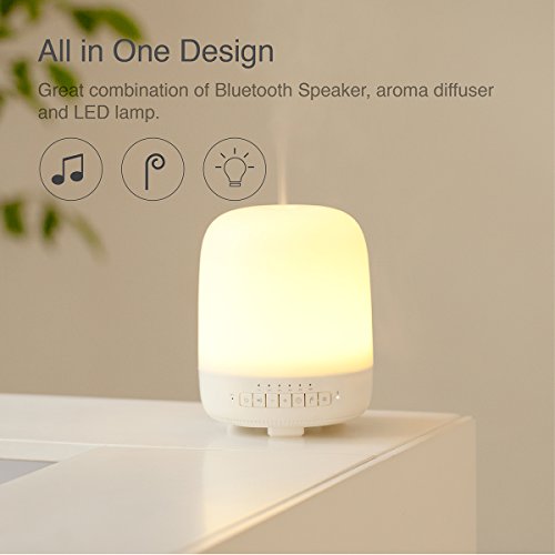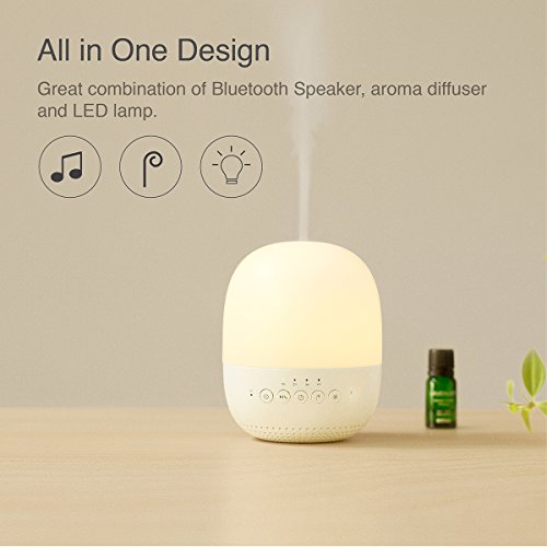 Emoi 3-in-1 100ml Cool Mist Humidifier Bluetooth Speaker Lamp, Patent Essential Oil Aroma Diffuser, 7-Color LED Music Night Light, 1-6 Hour Timer Setting, APP Control for Home and Office.(H0035)