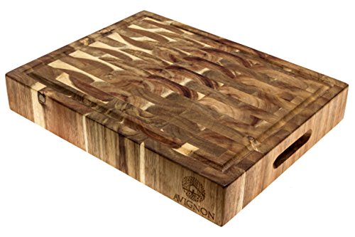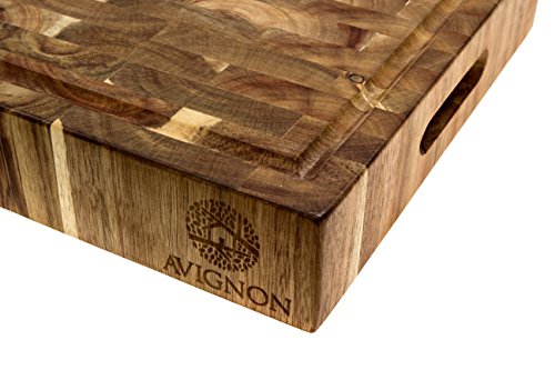 Avignon Large End Grain Cutting Board, Prep Station, Thick Acacia Wood 15 Inches Wide