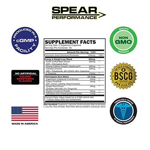 -. Title : SPEAR Performance Catalyst- Thermogenic Lipolytic Fat Burner & Weight Loss Supplement 30 Servings Natural Veggie Capsules Control Appetite and Reduce Cravings. Increased Energy and Fat Burning