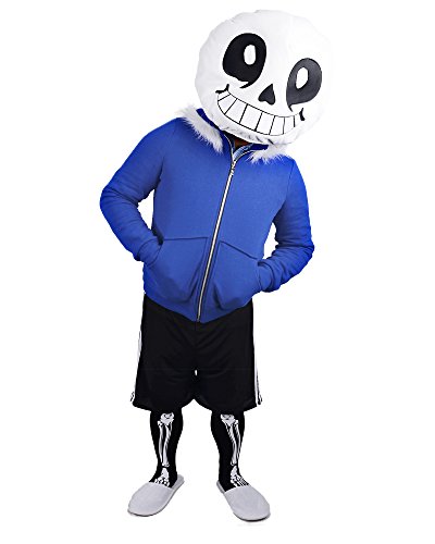 -. Brand : Miccostumes -. Color : Blue -. Department : Mens -. Feature : It comes with a blue hoodie with detachable head,shorts,stockings with skull print,slippers and gloves. / The whole costume is one size which fits all. / It is for person who is 155-180 cm high. / The model is 163 cm tall, with 89 cm bust size, 89 cm hips size. And her weight is 133 lbs. -. PackageQuantity : 1 -. ProductGroup : Apparel -. ProductTypeName : ADULT_COSTUME -. Title : Miccostumes Men's Skull Sans Cosplay Costume One size