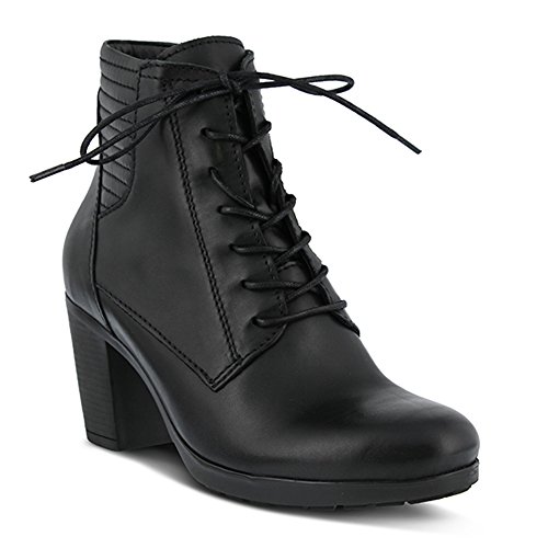 Studio : Spring Step Publisher : Spring Step Binding : Apparel Product Description Ultimate comfort with every step. Designed with the quality and craftsmanship of true European tradition. Spring Step combines comfort, technology and fashion to bring you everything that is important in a shoe. Tehoto, lace-up bootie with quilting and heavy stitch details features round toe, high quality leather upper, durable waxed cotton laces, flexible lug outsole, inside zipper closure, soft textile lining, leather padded insole, PU outsole. Heel height (approximately): 3 1/2'. Shaft height (approximately): 4 1/2'. Circumference (approximately): 9'. Material: Leather, Textile. 0