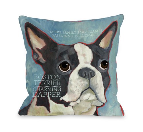 One Bella Casa Boston Terrier 1 Throw Pillow, 18 by 18-Inch