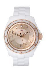 -. Title : Tommy Hilfiger Kelsey Bronze Dial White Plastic Ladies Watch 1781200