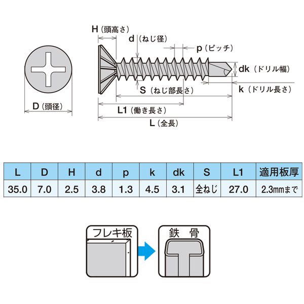 ●スペック:フレキ (三価ユニクロ) 3.8×35mm