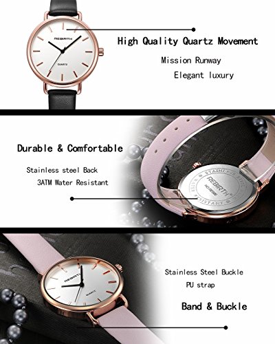 -. Title : Top Plaza Unisex Classic Luxury Dress Black Leather Rose Gold Case Quartz Wrist Business Analog Watch 3 ATM Waterproof