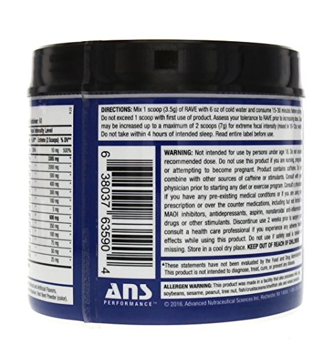 -. Binding : Health and Beauty -. Brand : ANS Performance -. Label : ANS Performance -. LegalDisclaimer : Other Ingredients: -. Manufacturer : ANS Performance -. PackageQuantity : 1 -. ProductGroup : Health and Beauty -. ProductTypeName : HEALTH_PERSONAL_CARE -. Publisher : ANS Performance -. Studio : ANS Performance -. Title : ANS Performance Rave