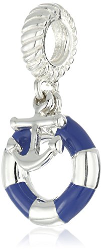 -. Feature : Ship Ahoy! The anchors away charm features a life preserver ring in classic nautical style and a petite anchor on a rope bail. Sterling silver charm with blue enamel accents. / Made in China