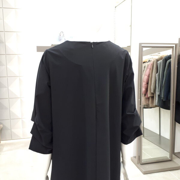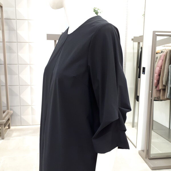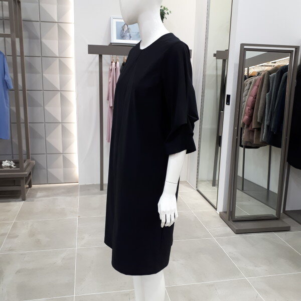 스판소재라서 편하게 입으시기 좋은 원피스입니다 기본라인에 소매에 주름포인트가 있어 멋스러운 원피스예요 55사이즈 총장 96cm 입니다